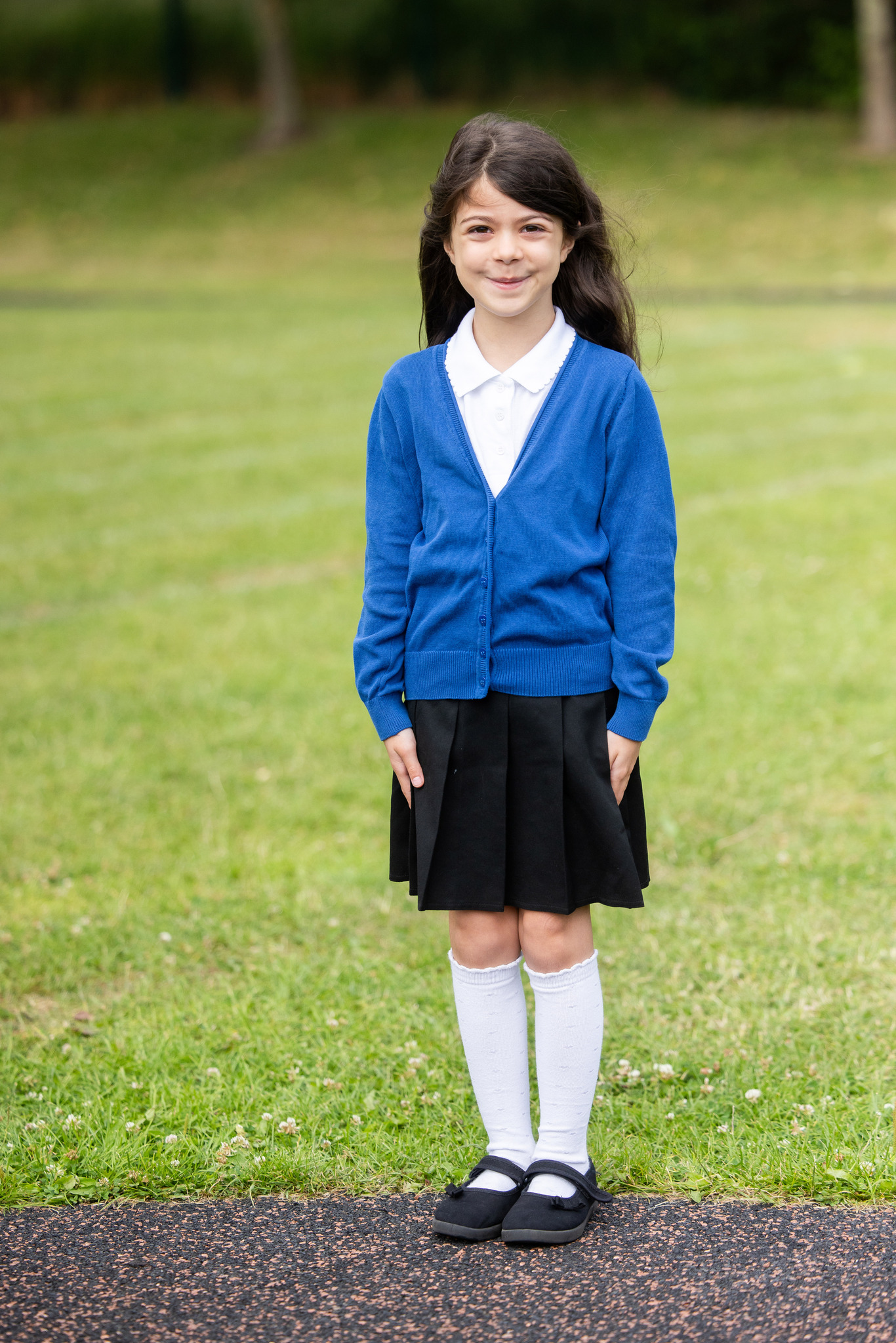 - A Royal Blue v-neck jumper or cardigan with or without our Logo